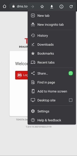 Gambar 2 – Tampilan Mobile Menu Browser Google Chrome