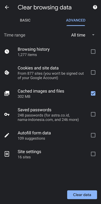 Gambar 4 – Tampilan Mobile – Clear Browsing Data