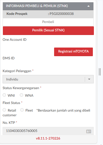 Penjelasan singkat mengenai tombol Registrasi mTOYOTA sebagai berikut :
