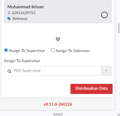 - data customer yang dipilih akan terdistribusi ke salesman yang dipilih. data customer akan tampil di menu daftar suspect other di role salesman