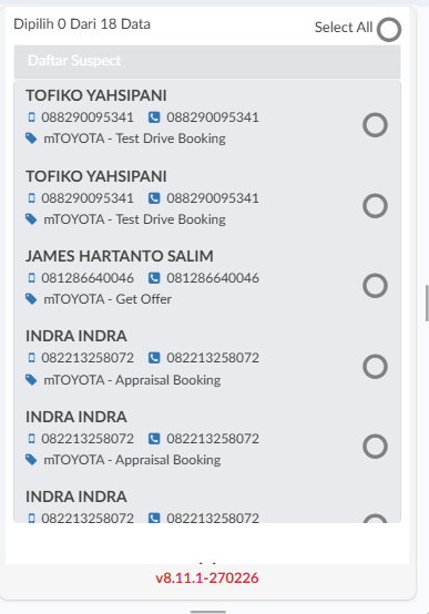 - daftar suspect yang didistribusikan akan menjadi tugas baru di daftar tugas salesman