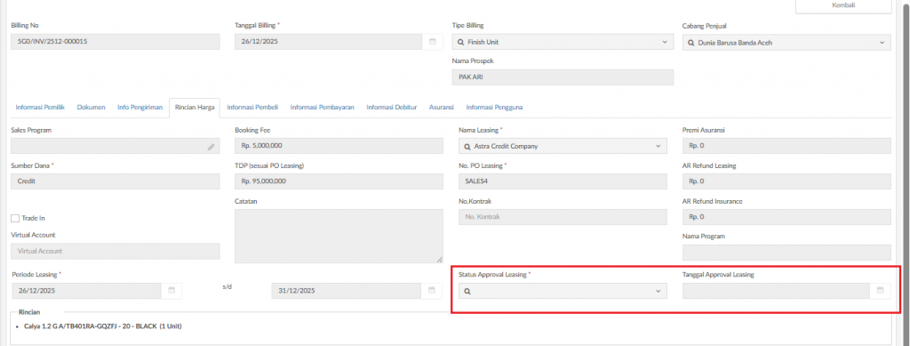 - Approved, ketika pengajuan leasing telah disetujui oleh pihak leasing