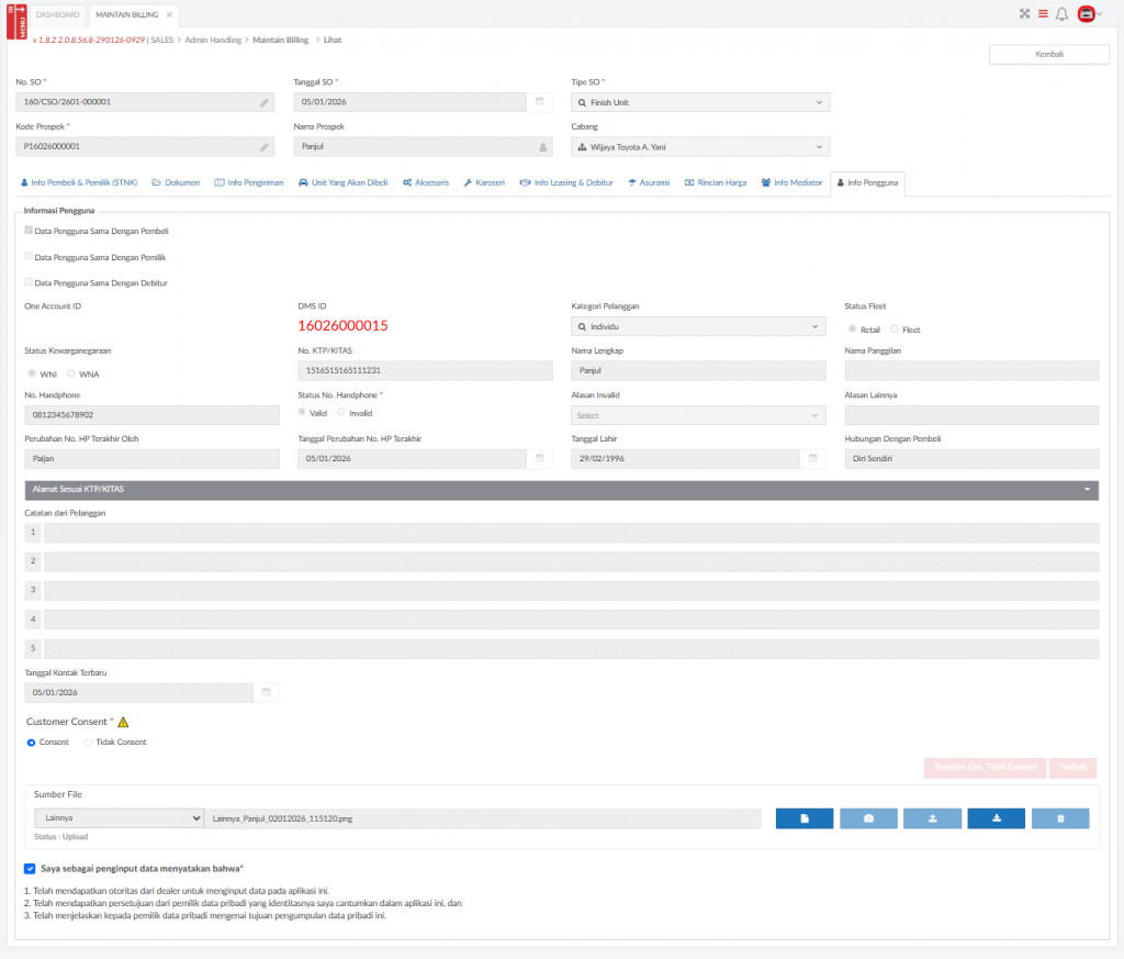 - Jika PDD sudah dilakukan oleh salesman melalui menu PDD , maka field ini sudah terisi tanggal dan tidak dapat di edit.