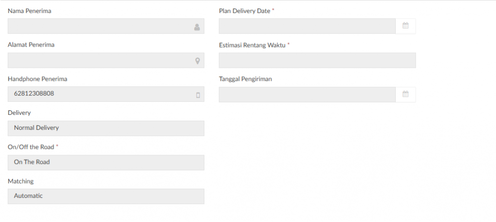 Info pengiriman berisi informasi pengiriman kendaraan yang sumber datanya berasal dari saat input SPK antara lain :