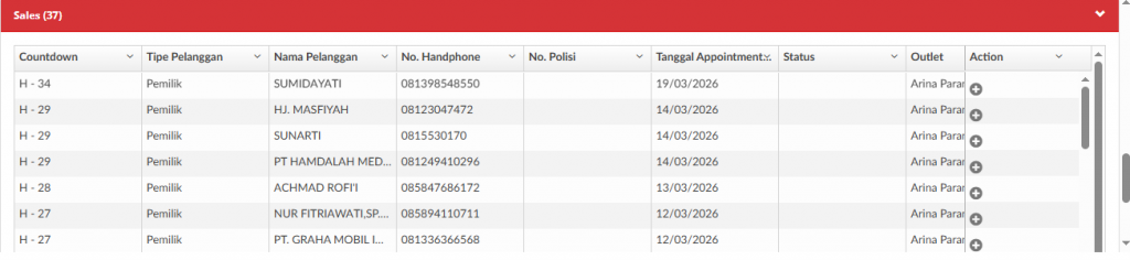 - Tanggal Appoinment : tanggal appoinment yang di request pelanggan