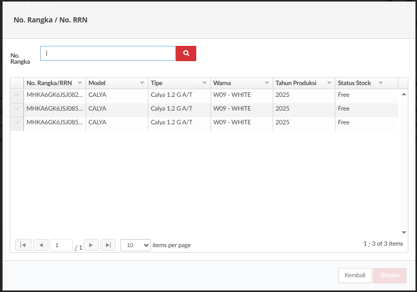 link titik 3 ini digunakan untuk menampilkan list nomor rangka yang dapat di matchingkan dengan nomor SPK atau nomor SO seperti gambar dibawah ini.