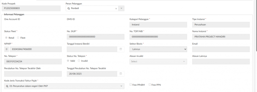 Customer Pembeli adalah Informasi pelanggan yang tertera sebagai pemesan/pembeli di SPK. Bisa berupa individu ataupun instansi.