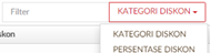 Kolom filter pencarian berdasarakan Katagori Diskon dan Peresentase Diskon.