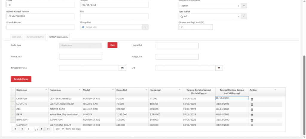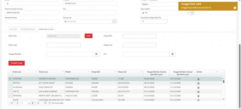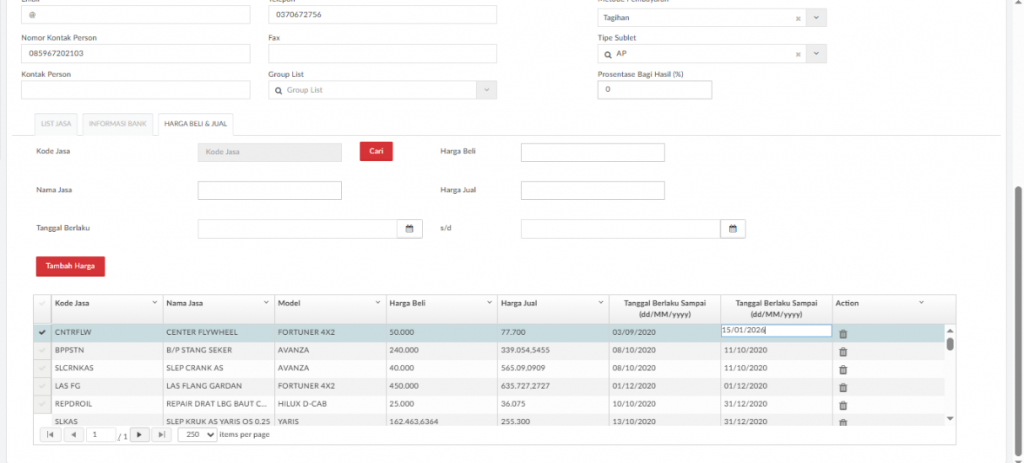 - Bisa edit kolom tanggal berlaku sampai pada Menu Master Vendor pada bagian Harga dan Jual