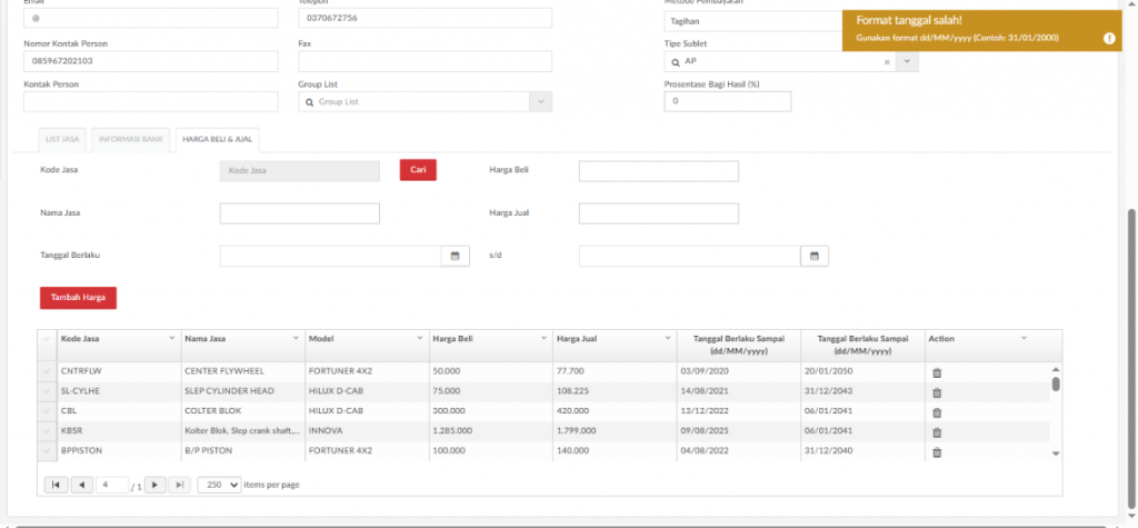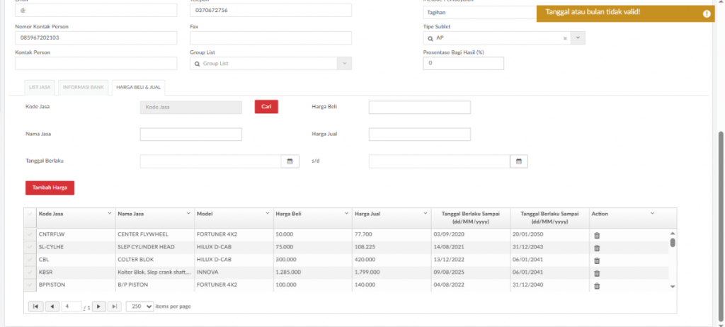 - Menambahkan validasi pada saat edit tanggal berlaku sampai jika tanggal tidak sesuai sesuai format (dd/mm/yyyy) dan tanggal berlaku kurang dari Hari ini