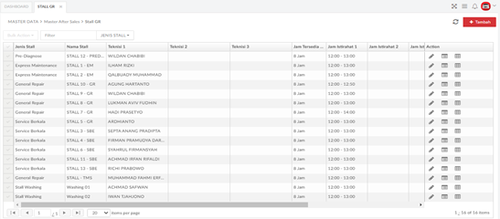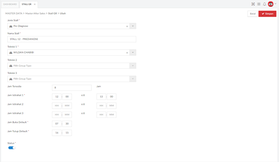 Merupakan pilihan untuk teknisi yang bertugas dalam stall tersebut.