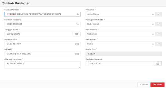- Kota / Kab : kota atau kabupaten sesuai alamat customer.