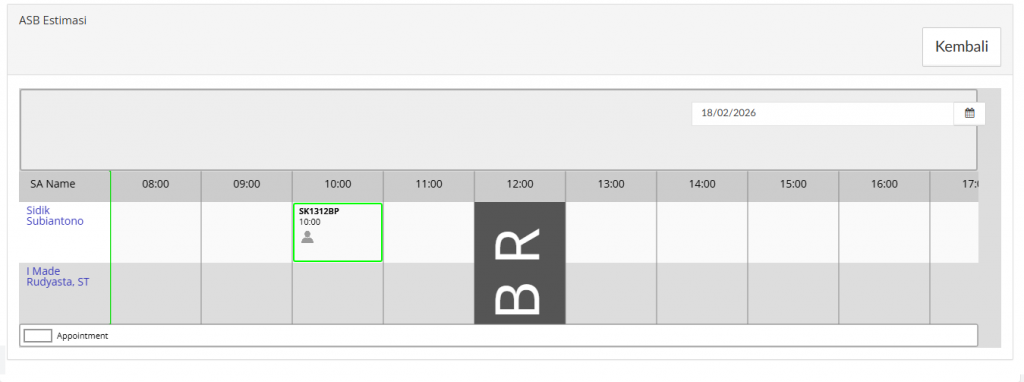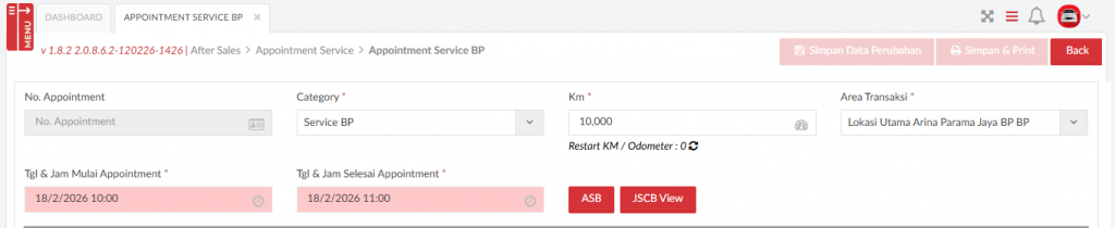 Kolom Tanggal dan Jam appointment akan terisi sesuai dengan inputan pada ASB (Appointment Schedule Board).