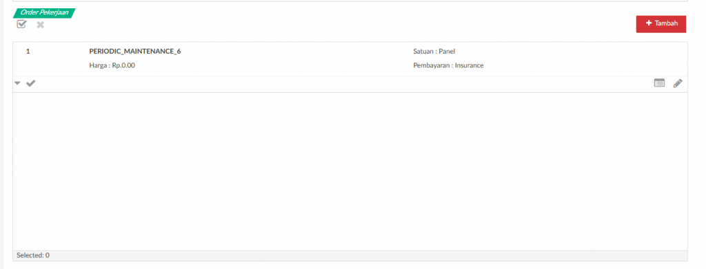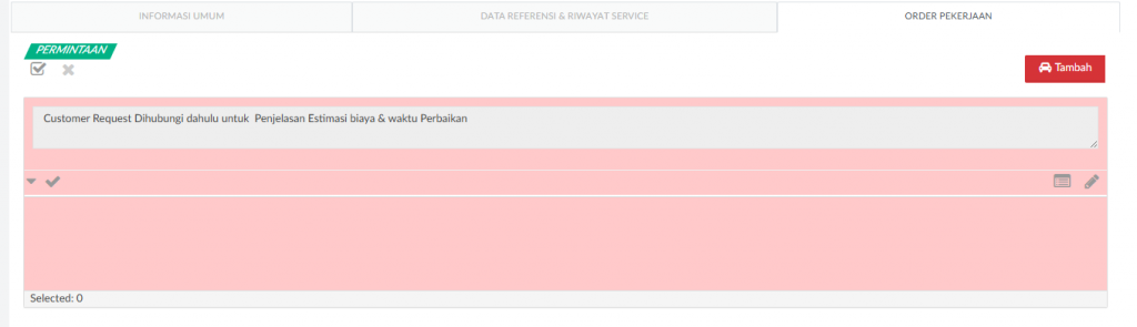 Merupakan tombol yang dapat digunakan untuk menambah data. Tombol ini akan muncul disetiap area seperti : Permintaan dan Order Pekerjaan