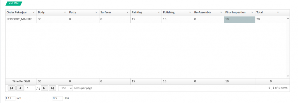 - Job Plan Merupakan item-item yang harus diisi dengan lama waktu setiap pekerjaan dalam stall (satuan menit).