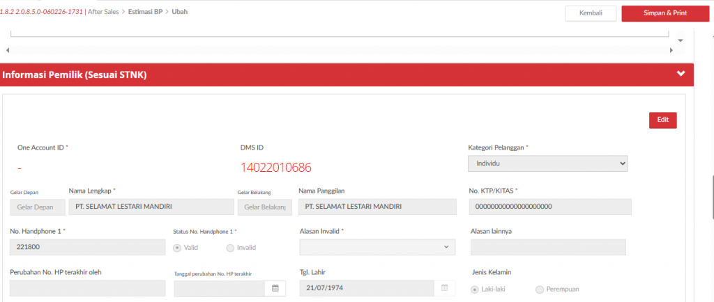Semua adjustment diatas tidak membutuhkan approval dari SA / Petugas Appointment / Petugas Sales Order.