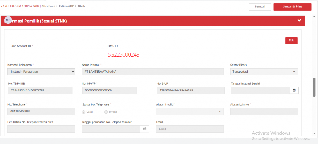 • Jika Data Pelanggan & Kendaraan ada & Data Estimasi ada, sistem menampilkan Pop-Up informasi Data Pelanggan & Kendaraan di CRM: Ada, Data Estimasi: Ada.