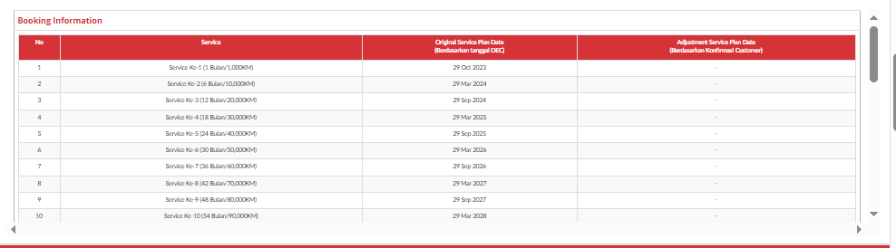 - Service ke-5 = Service ke-4 + 6 Bulan